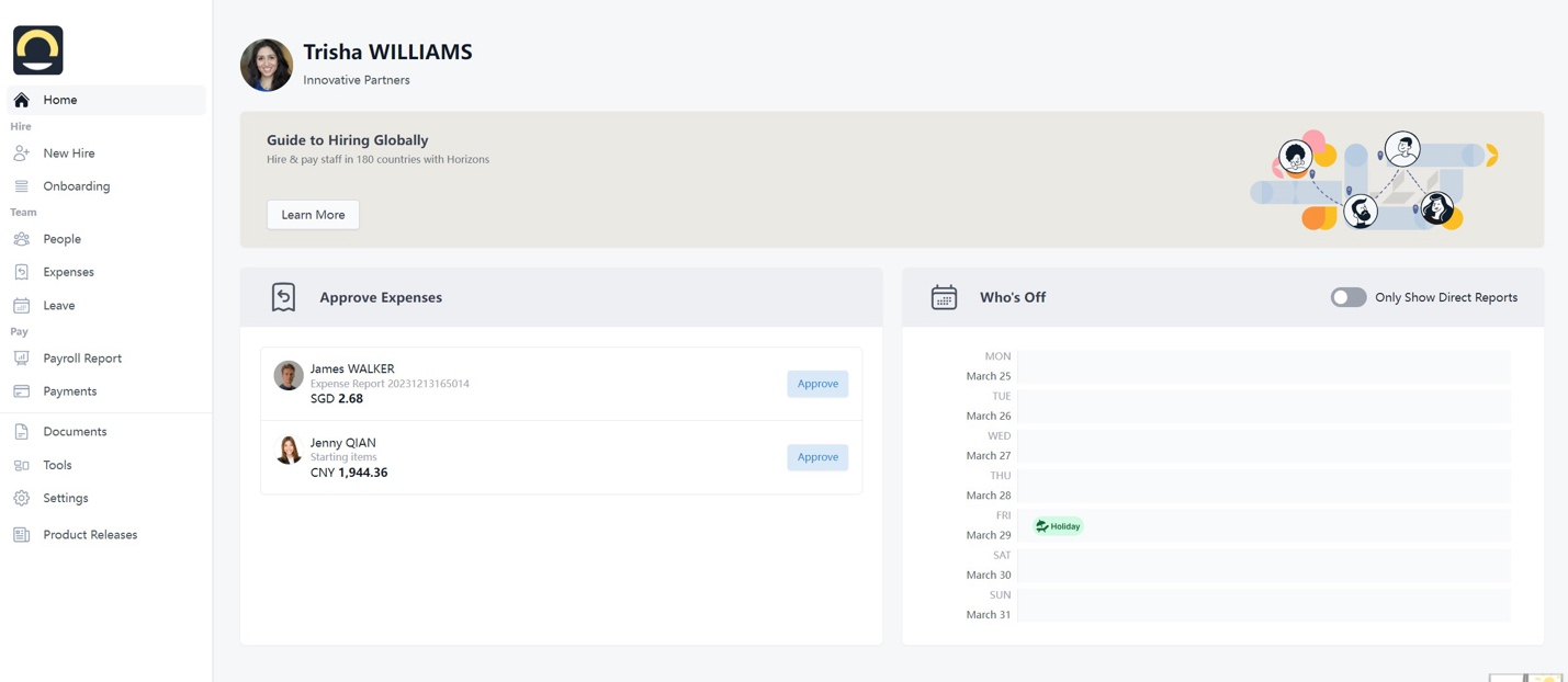 Horizons 门户是一款基于 Web 技术的综合性在线应用软件,作为云计算平台,支持实时数据同步与共享。它使员工、管理层及决策者能够通过互联网随时随地访问 Horizons EOR 平台,从而获取最新业务数据与信息。这一功能提升了企业在应对市场变化时的敏捷性,同时提高了决策过程的效率和准确性。