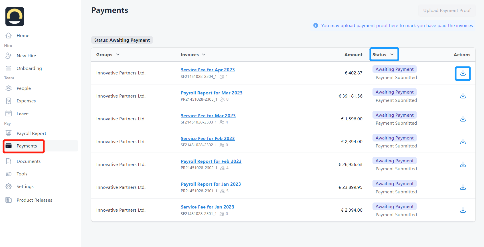 为支持这一改进,我们引入了新的补充发票类型,该发票将于每月15日开具。该发票将记录自每月6日首张发票开具后新增的所有数据,确保所有更新在薪资处理中得到准确反映。