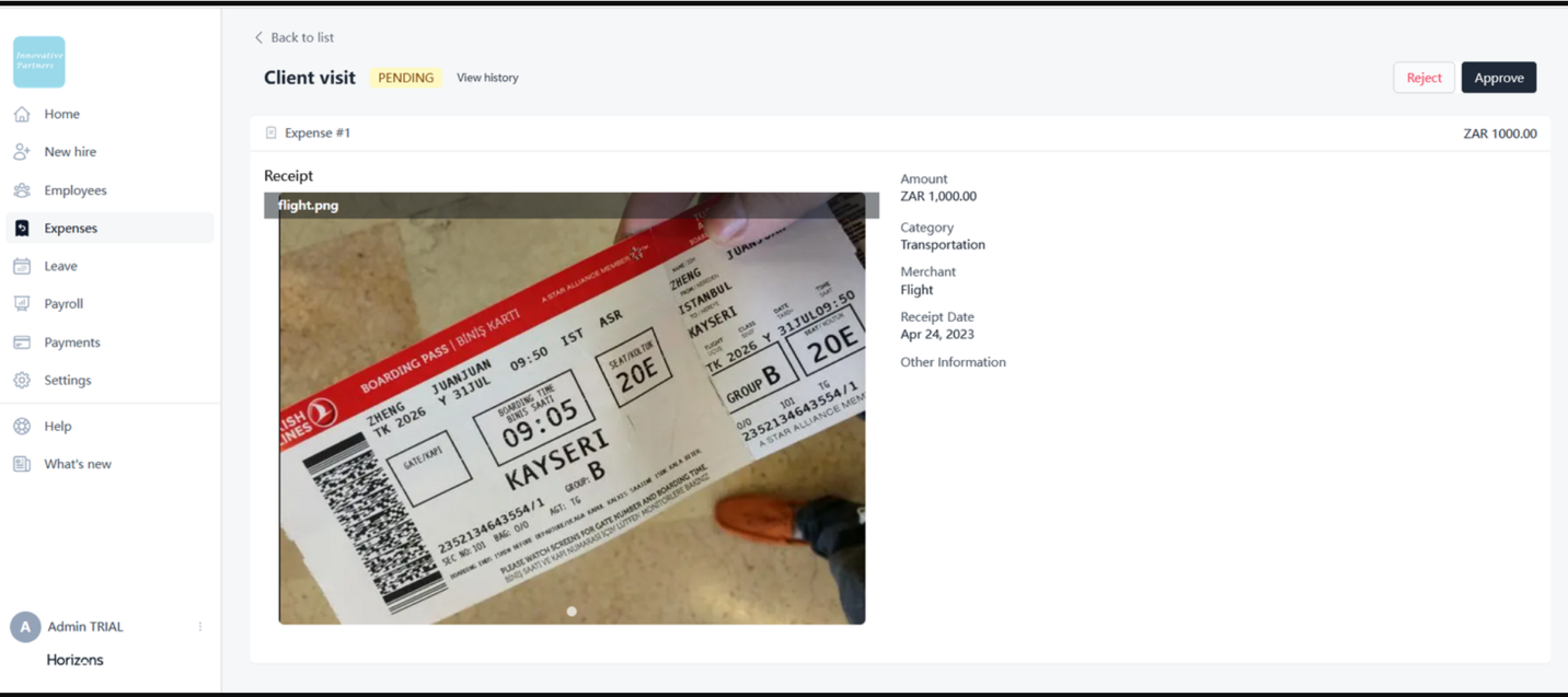Horizons 平台已优化移动端使用:费用报销单可通过移动设备轻松审核并批准。