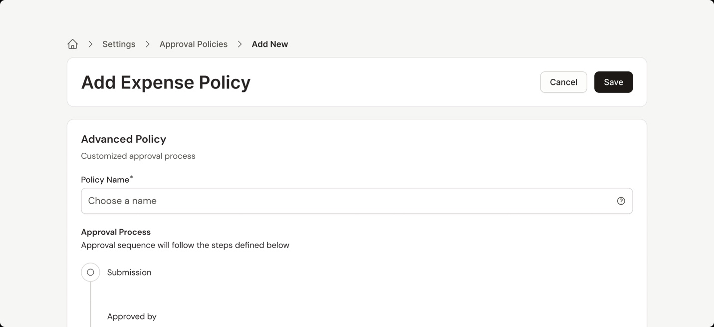 Horizons 为您提供灵活的设计空间,可根据贵公司需求定制专属的费用审批政策。请按照以下步骤设置并管理您的自定义政策:
