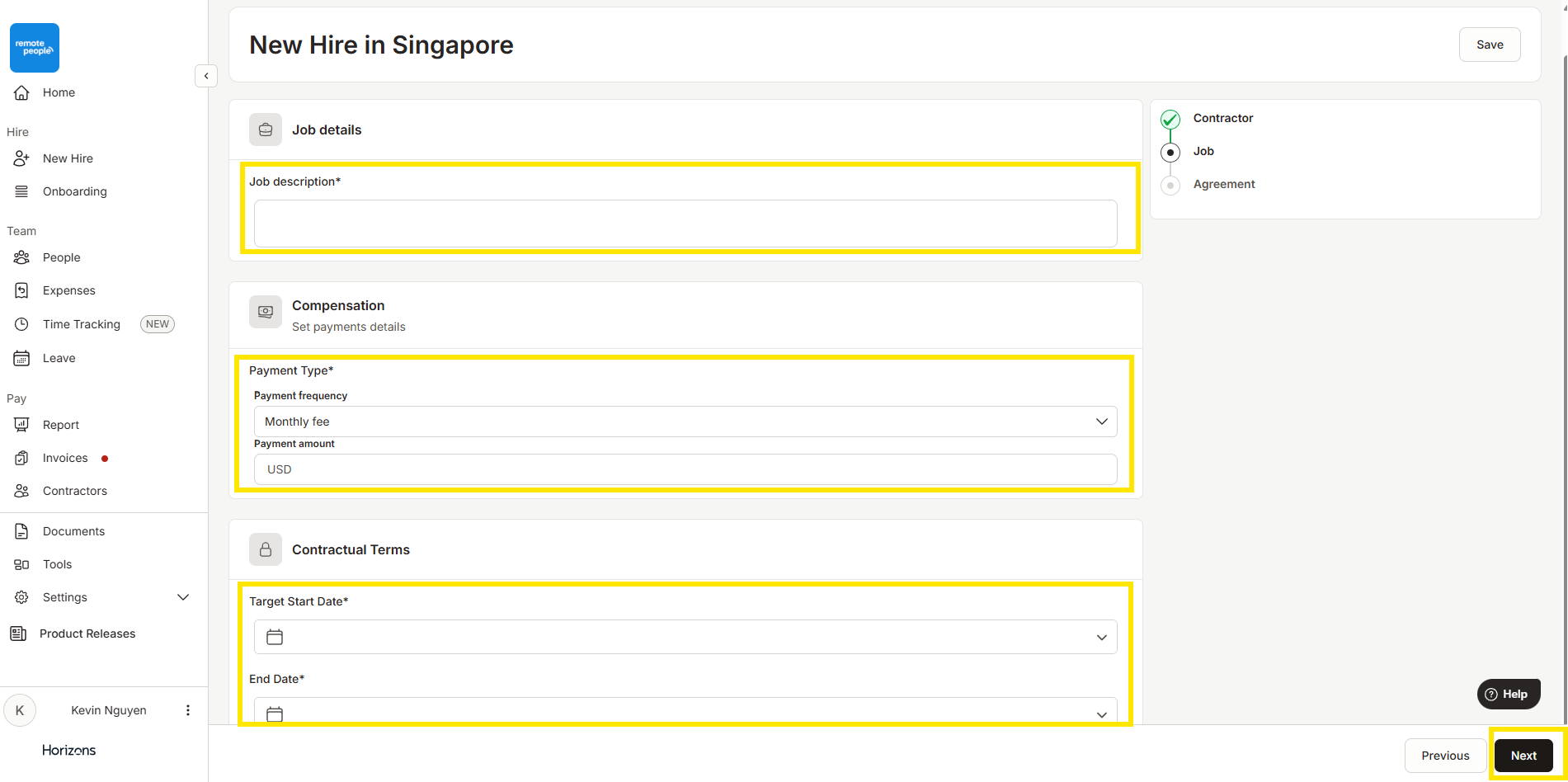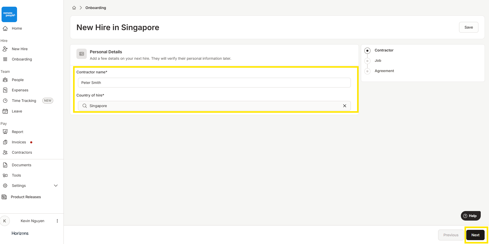按照以下步骤,使用Horizons作为法律合同实体快速高效地招聘承包商。