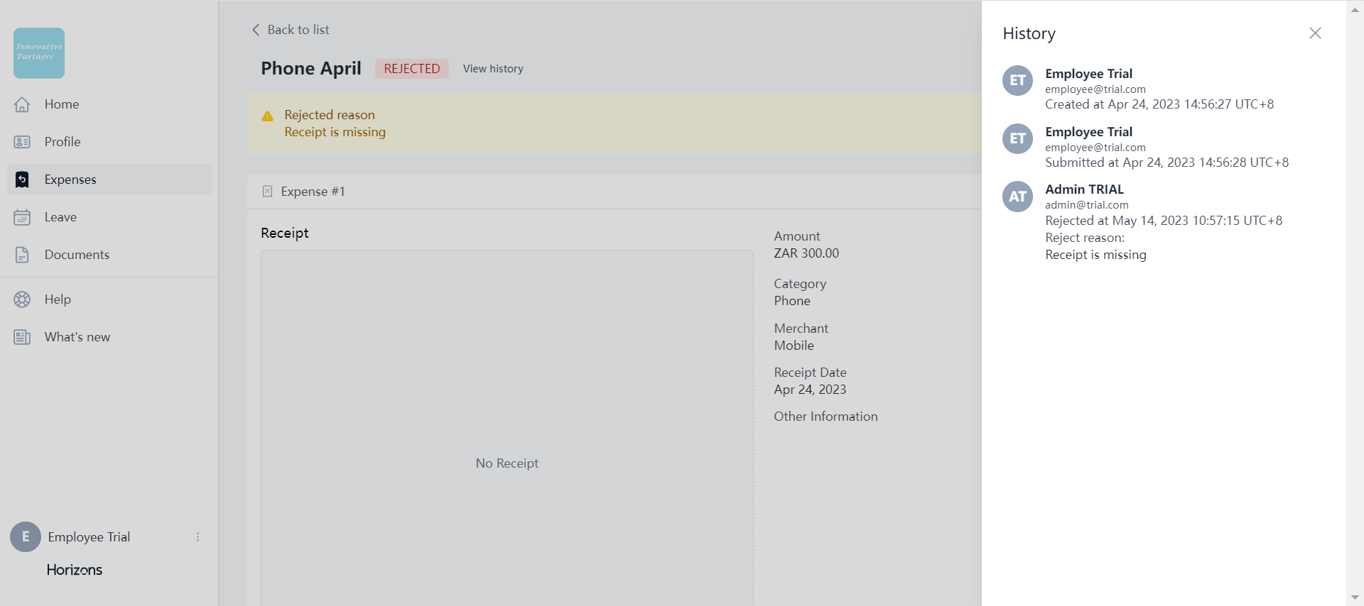 如果您的费用报销申请被拒绝,通常是因为疏忽或缺少收据,无需担心。您可以通过修改费用金额或补充必要收据来轻松解决问题。完成必要修改后,只需重新提交报销申请即可。