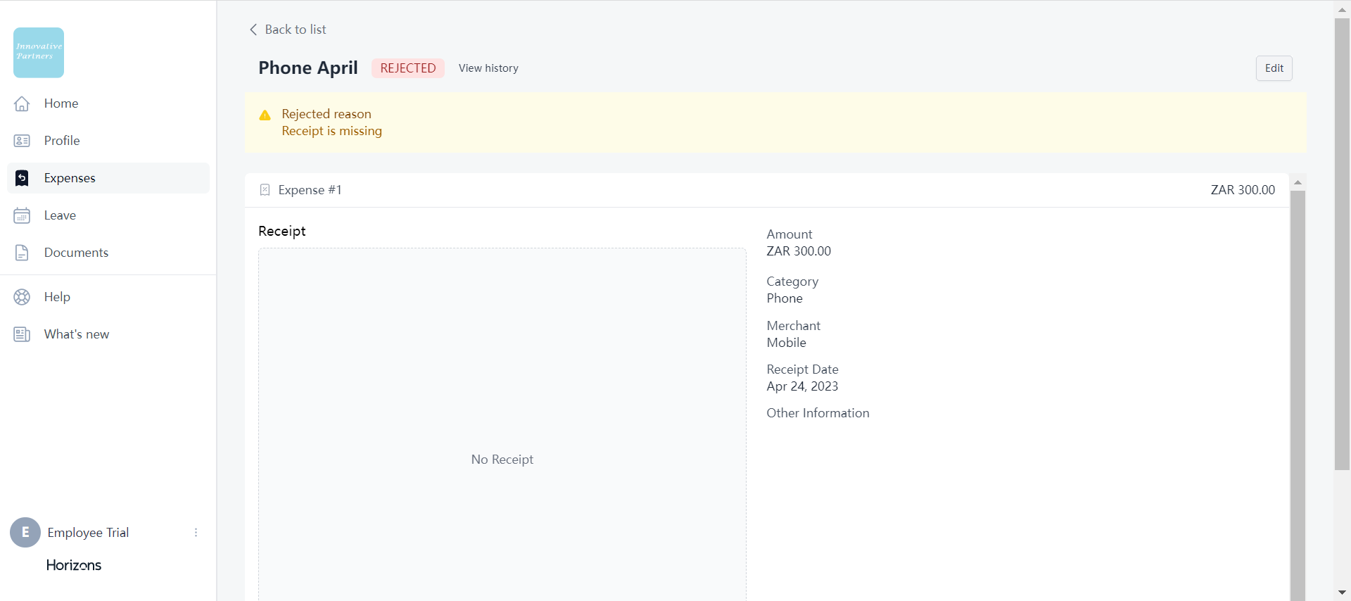 如果您的费用报销申请被拒绝,通常是因为疏忽或缺少收据,无需担心。您可以通过修改费用金额或补充必要收据来轻松解决问题。完成必要修改后,只需重新提交报销申请即可。