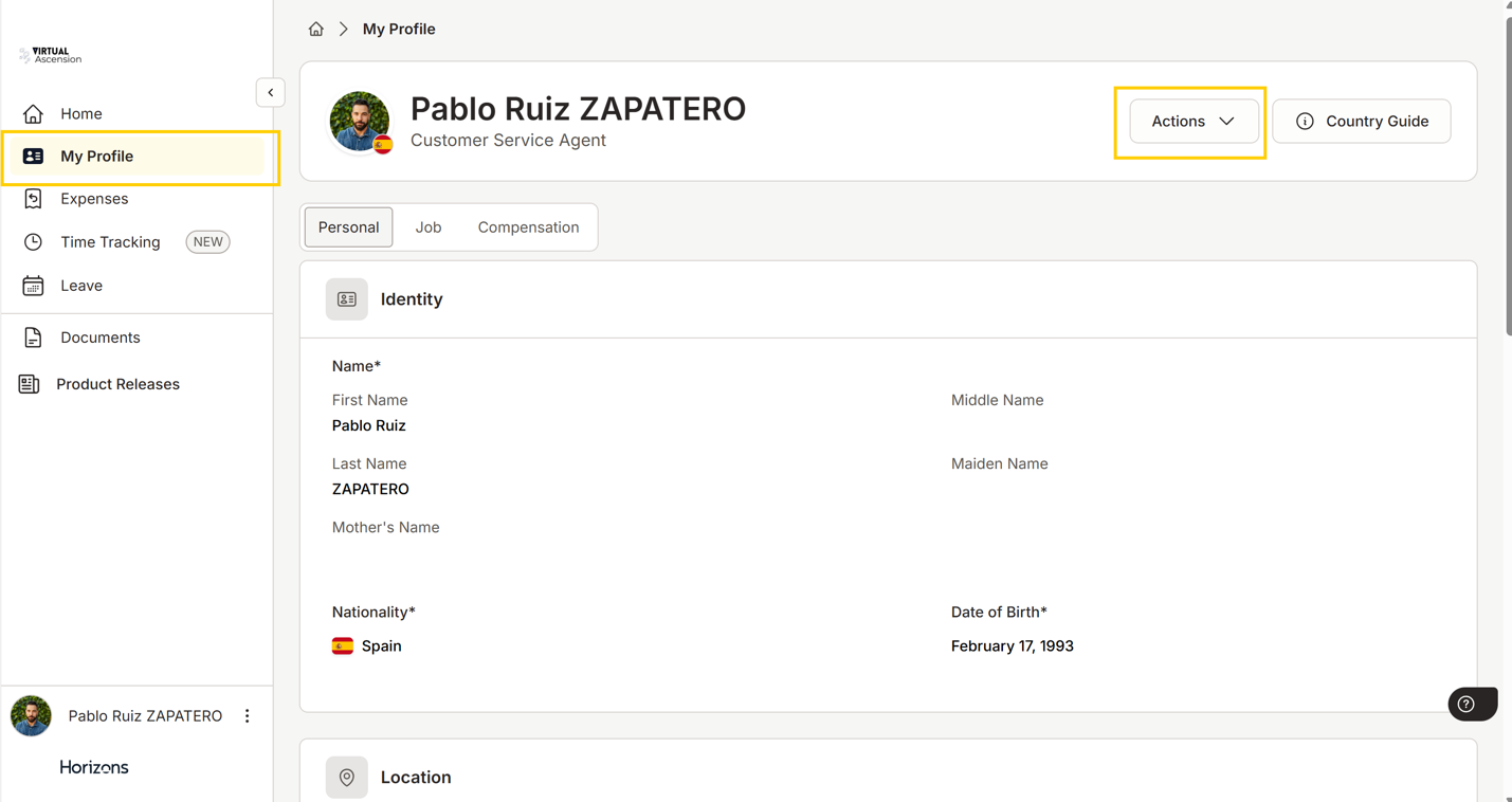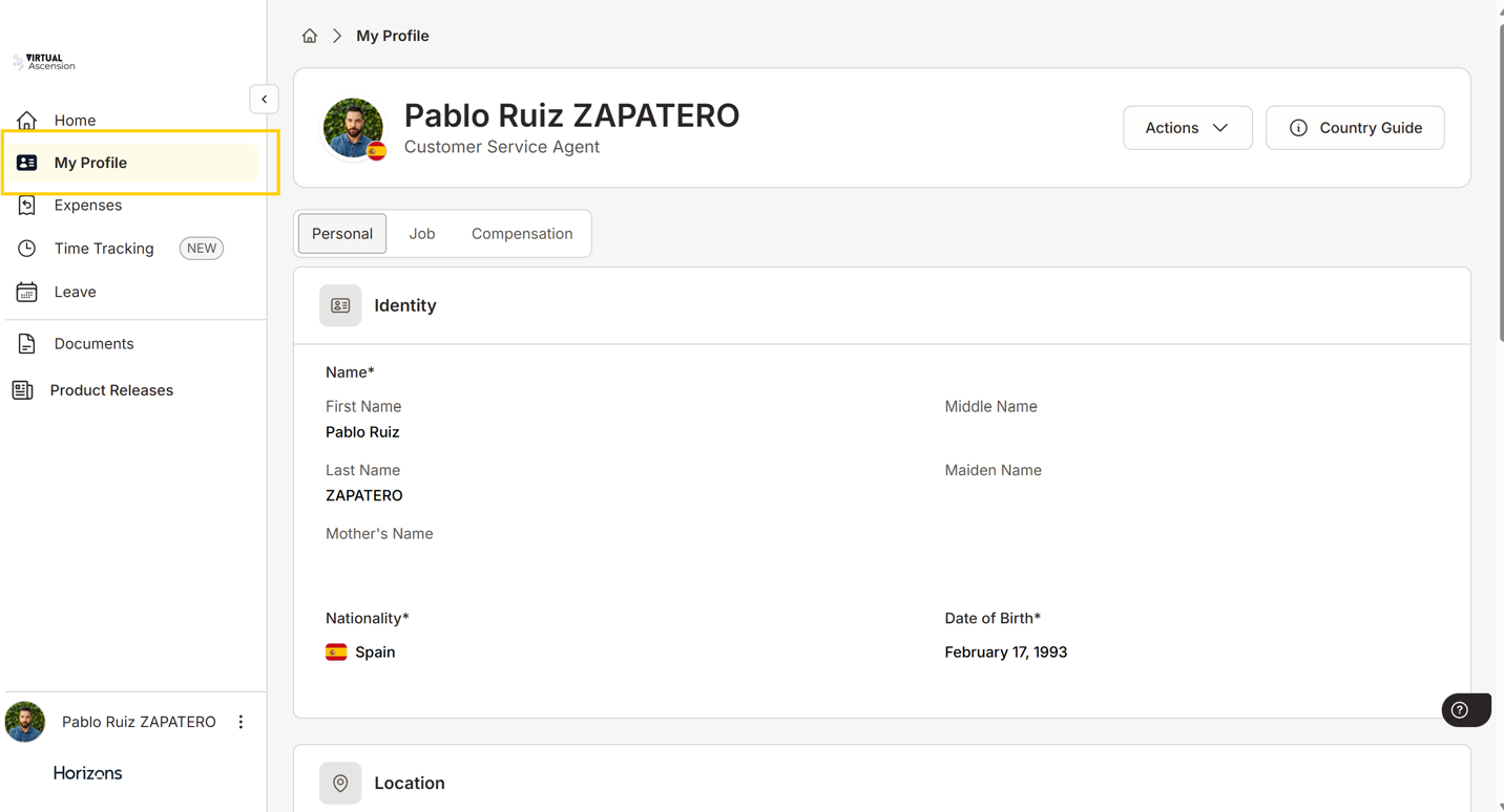 访问Horizons平台并使用您的凭证登录。登录后,从主仪表盘导航至“My Profile”。