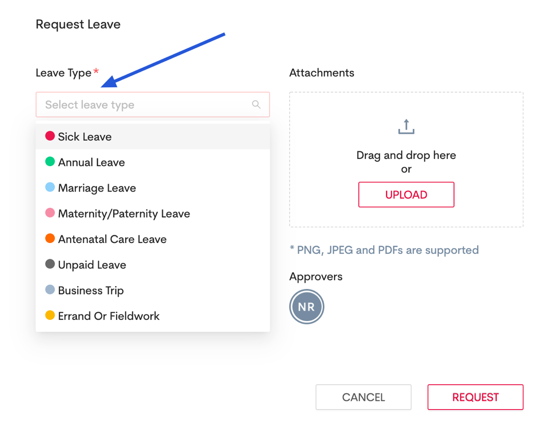 当您申请休假时,系统将根据您的资格自动显示所有适用的休假类型。